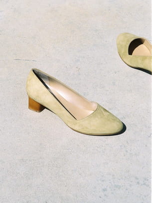 Escarpins "Oslo" en daim vert pâle d'Anne Thomas
