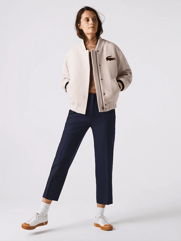 Pantalon cigarette en laine mélangée bleu marine de Lacoste