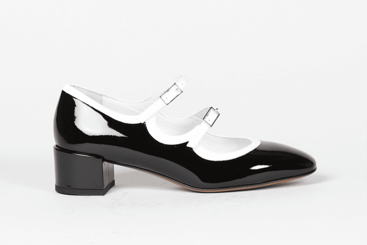 Babies en cuir verni noir et blanc de Carel