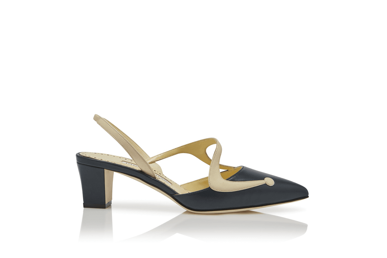 Slingbacks en cuir bleu marine et jaune de Manolo Blahnik