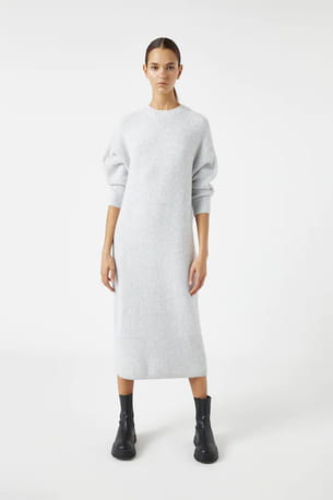 Robe oversize en maille côtelée grise à manches longues de Pull & Bear