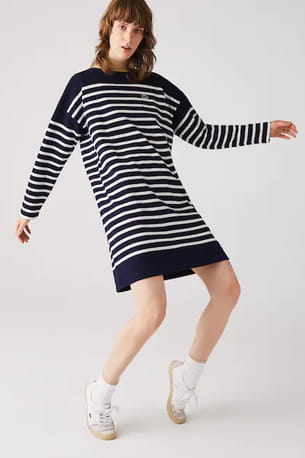 Robe marinière oversize en coton lourd noir et blanc de Lacoste