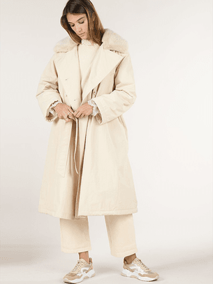 Manteau crème avec col en fausse fourrure de Molly Bracken