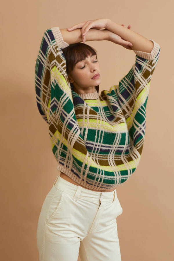 Pull à carreaux manches chauve souris de Mapoésie