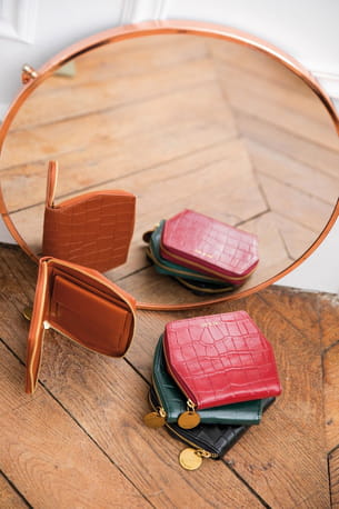 Porte-monnaie en cuir embossé croco de Nat & Nin