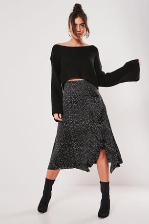 Jupe d'hiver mi-longue à volant imprimé pois de Missguided