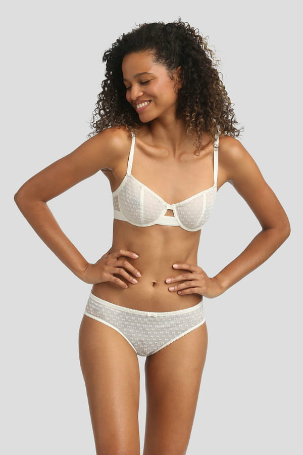 Ensemble lingerie broderies nœuds soutien gorge corbeille et culotte de Dim