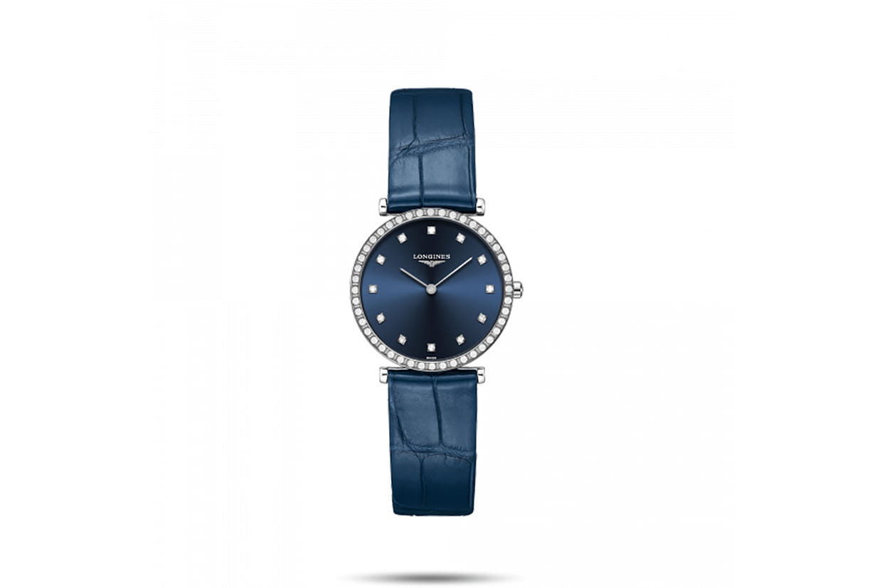 Montre avec cadran 29 mm serti de 12 diamants, mouvement à quartz de Longines