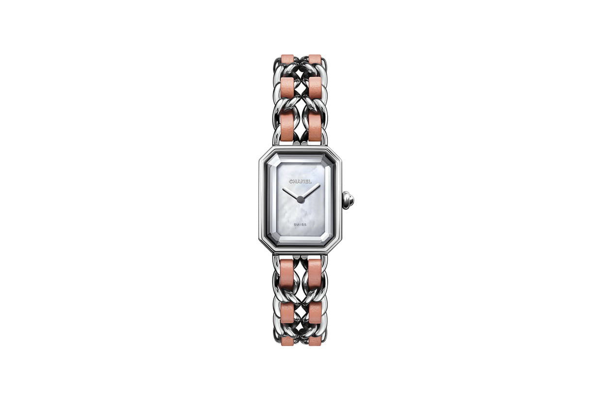 Montre avec bracelet en acier cuir corail et cadran en nacre de Chanel