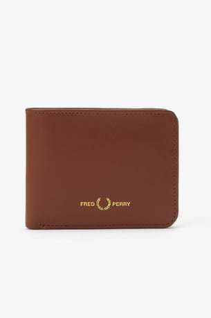 Portefeuille en cuir marron avec logo doré de Fred Perry