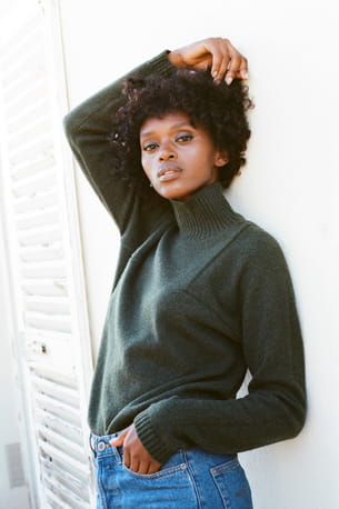 Pull en cachemire col roulé vert fumé "Charlotte" de Linnea Lund