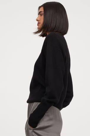 Pull en cachemire noir au col rond et aux finitions côtelées de H&M