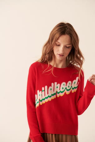Pull en cachemire "Childhood" rouge à col rond de From Future