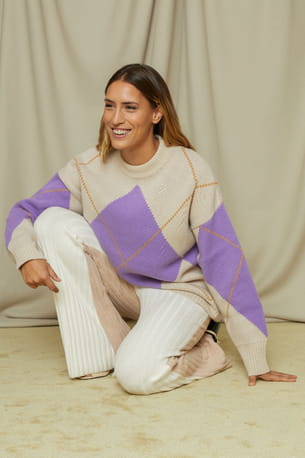 Pull "geometrist" blanc et lilas de Valentine witmeur lab