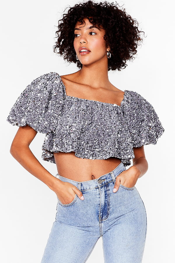 Top cropped brillant à volants de Nastygal