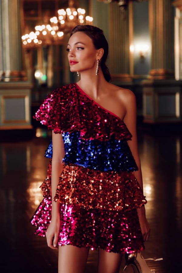 Robe "Lena" asymétrique en sequins multicolores de Sundress