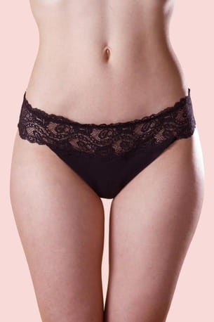 Culotte menstruelle "Rosa" en dentelle noire et en coton bio pour flux léger à moyen de Pourprées