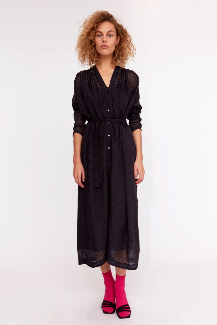 Robe plumetis charbon en jacquard de soie de Roseanna