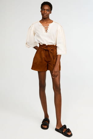 Short d'été en daim responsable couleur fauve de Claudie Pierlot