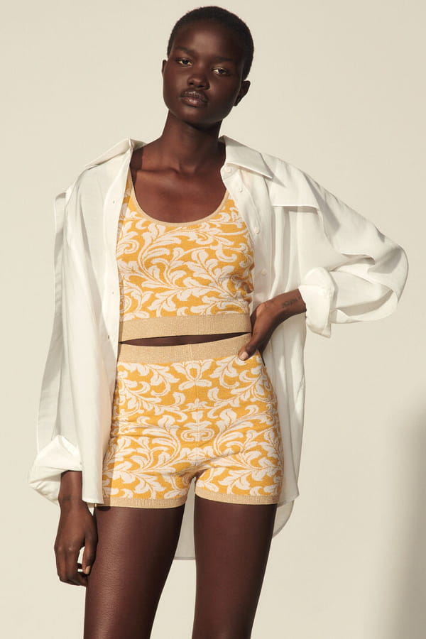 Short d'été en maille jacquard à imprimé jaune de Sandro