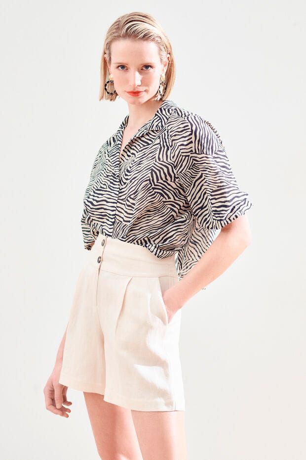 Short d'été "Rafael" taille haute couleur vanille de Caroll