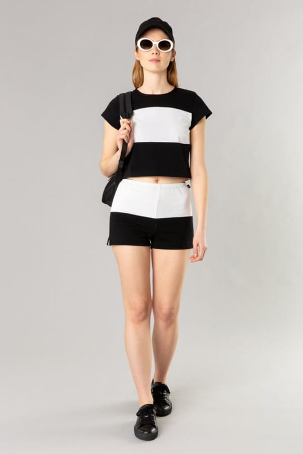 Short d'été "Vague" à rayures larges noir et blanc d'Agnès B