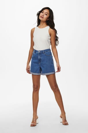 Short d'été mom jean taille haute à ourlets "Onlvega" de Only