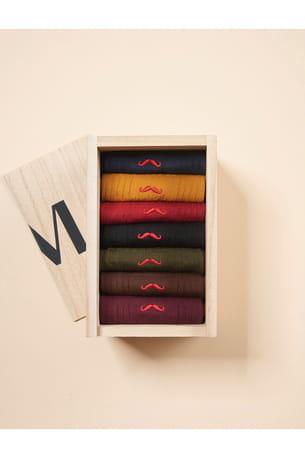 Semainier chaussettes en pur fil d'écosse dans un coffret bois de M.Moustache