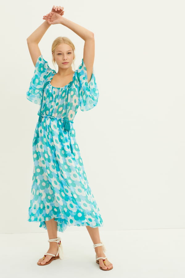 Jupe printemps-été midi fluide bleue "Jucy" d'Antik Batik
