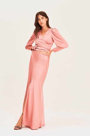 Jupe printemps-été longue fendue "Bicy" couleur blush de Ba&sh