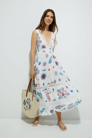 Robe décolleté en V en coton et viscose imprimés de Desigual