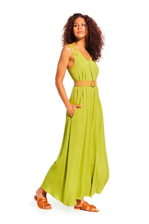 Robe longue vert jaune avec manches ajourées de Caroline Biss