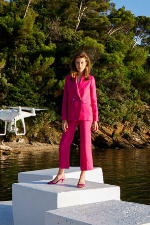 Costume rose avec veste cintrée et pantalon court de Roseanna