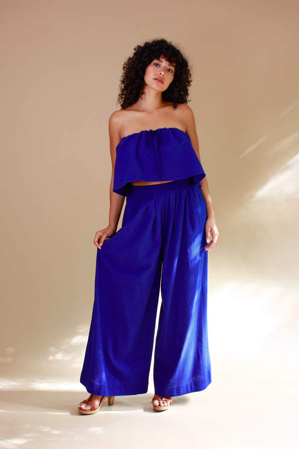 Bustier "Rio" et pantalon "Peneloppe" bleu électrique de Mapoésie