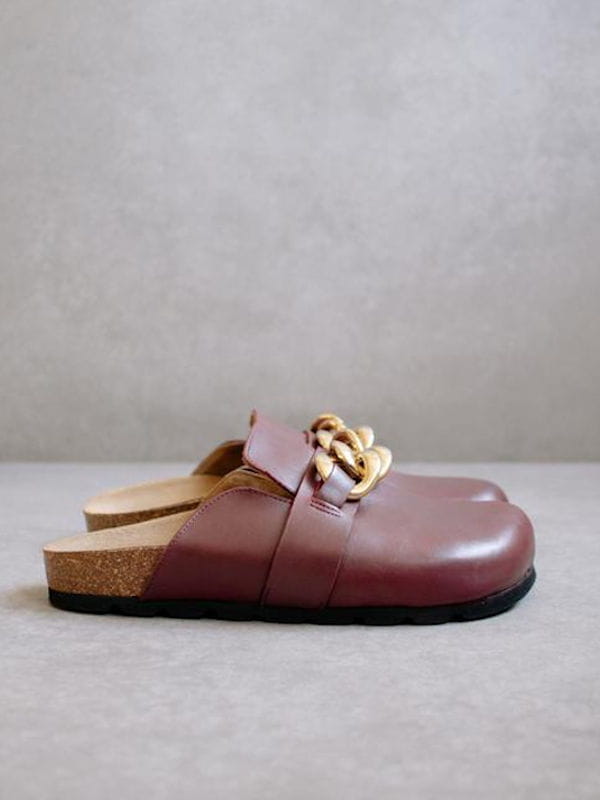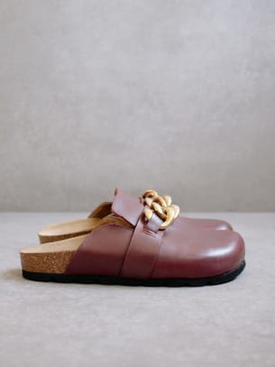 Sabots en cuir bordeaux et chaîne de Alohas