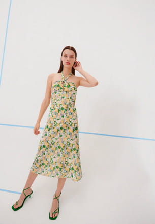 Robe imprimée midi bretelles croisées au cou de Zara