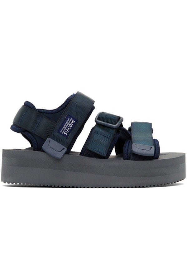 Sandales bleues à semelle compensée de Suicoke sur Ssense.com