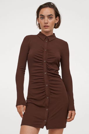 Robe chemise en jersey marron de H&M
