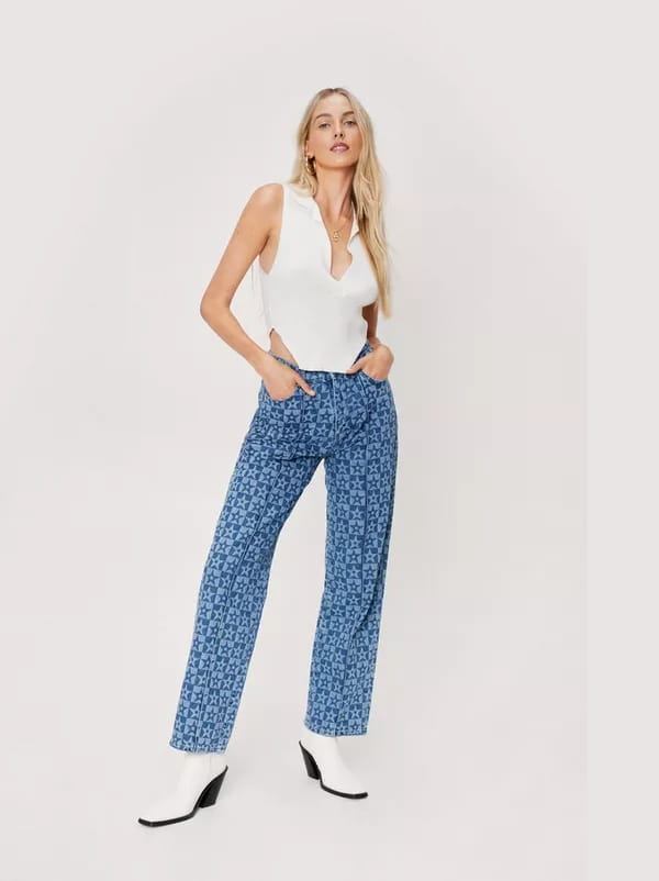 Jean droit taille haute à imprimé étoiles de Nasty Gal