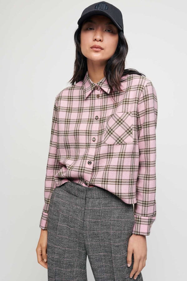Chemise rose à carreaux de Maje
