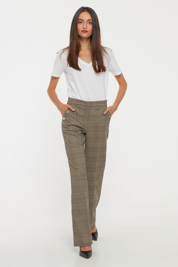 Pantalon large à imprimé prince-de-galles boutonné beige de Best Mountain