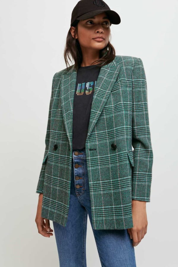 Veste à carreaux double boutonnage à épaulettes verte de Maje