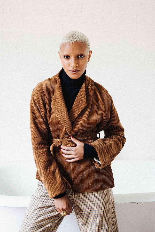 Veste ceinturée "Kimona" en velours camel des Récupérables