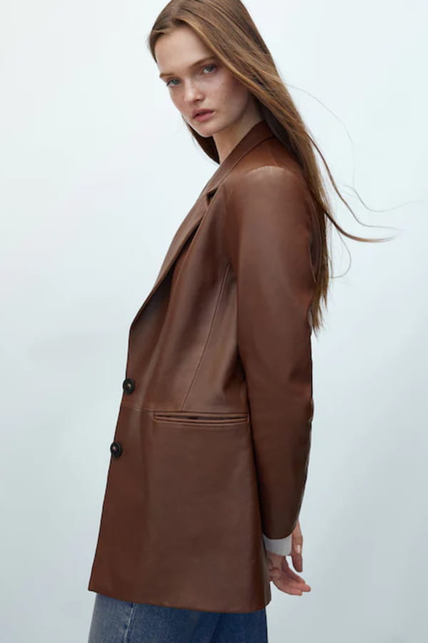 Veste blazer en cuir marron "Napa" de Massimo Dutti