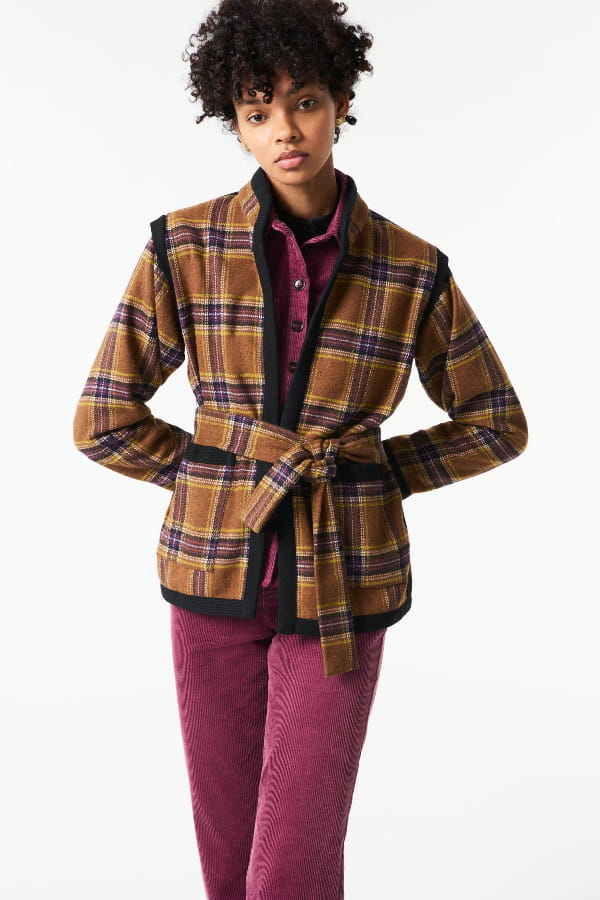 Veste ceinturée camel à carreaux "Haro" d'Antik Batik