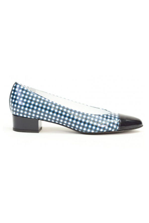 Ballerines "Brava" en cuir vichy bleu et verni bleu marine de Carel