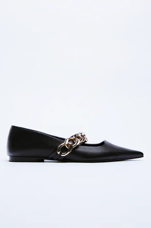 Ballerines noires en cuir à bout pointu et chaîne de Zara