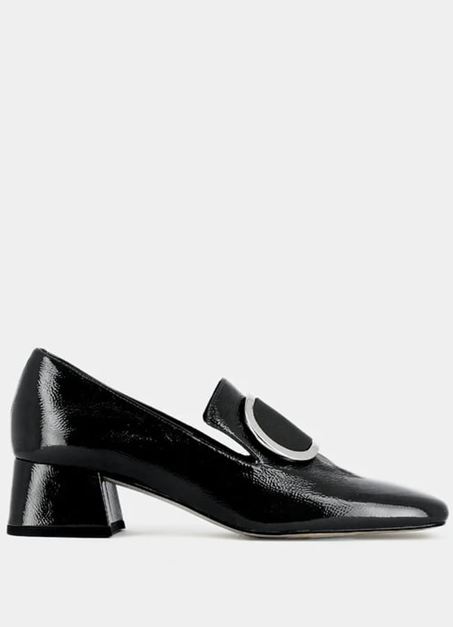Mocassins à talons et boucles en cuir verni plissé de Jonak