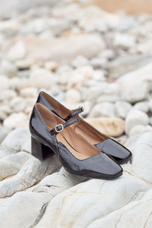 Escarpins "Léo" noirs à bride en cuir verni effet froissé de Mellow Yellow