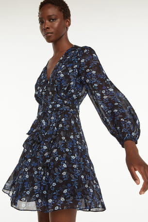 Robe courte bleue à imprimé fleuri et à manches longues de The Kooples